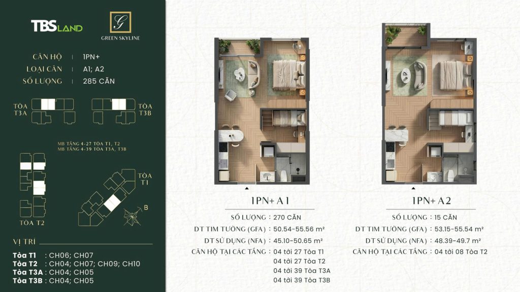 Từ khối đế với cảnh quan nhiệt đới mềm mại đến kiến trúc tháp vươn cao thanh thoát, GREEN SKY LINE mang đến một tổng thể hài hòa giữa thiên nhiên – ánh sáng